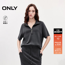 ONLY2026春季新款半拉链立领舒适亲肤宽松天丝插肩袖半袖卫衣女